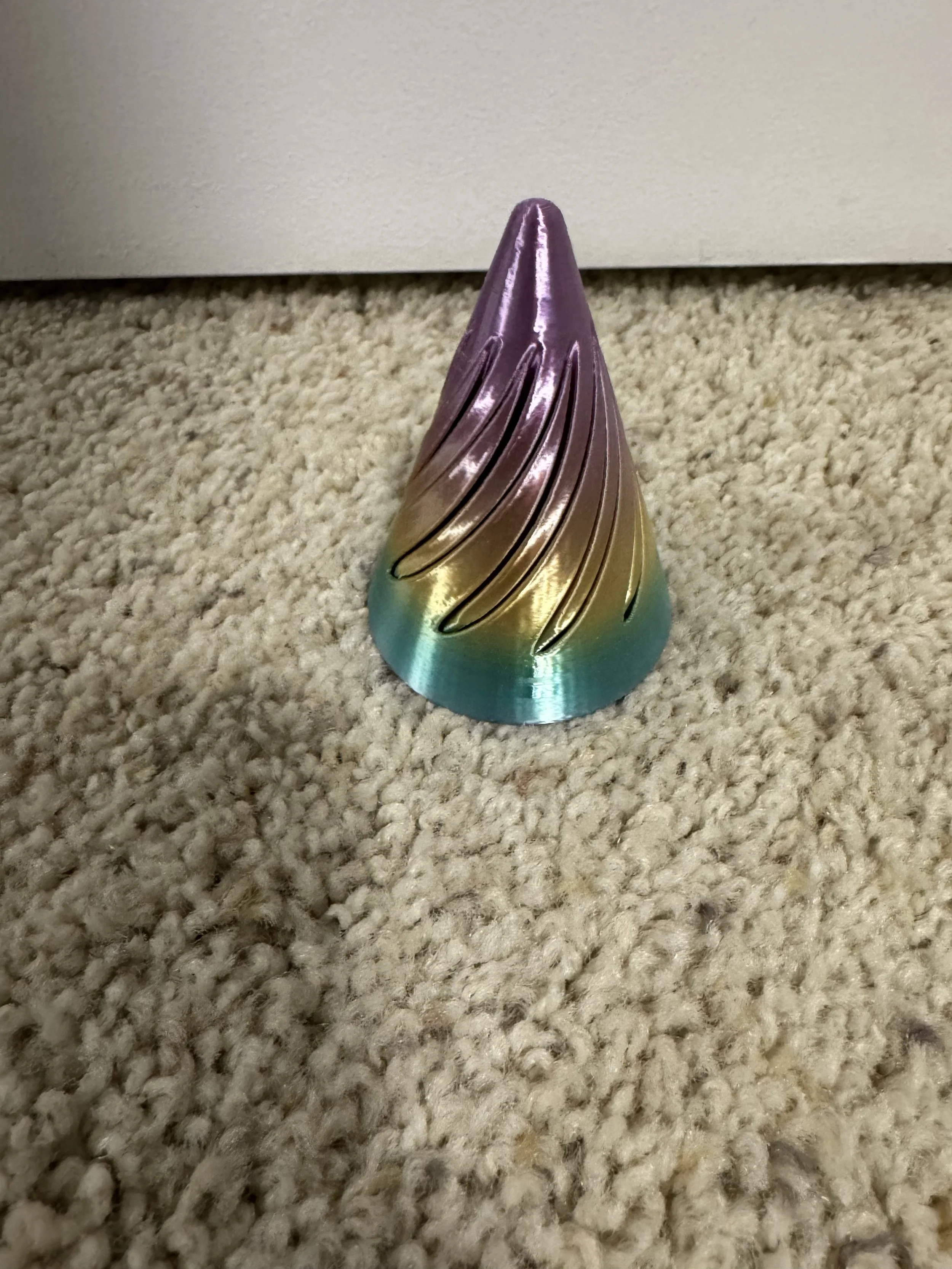 3D Printed Spiral Cone Fidget – Rainbow Metallic Stress-Relief Toy
