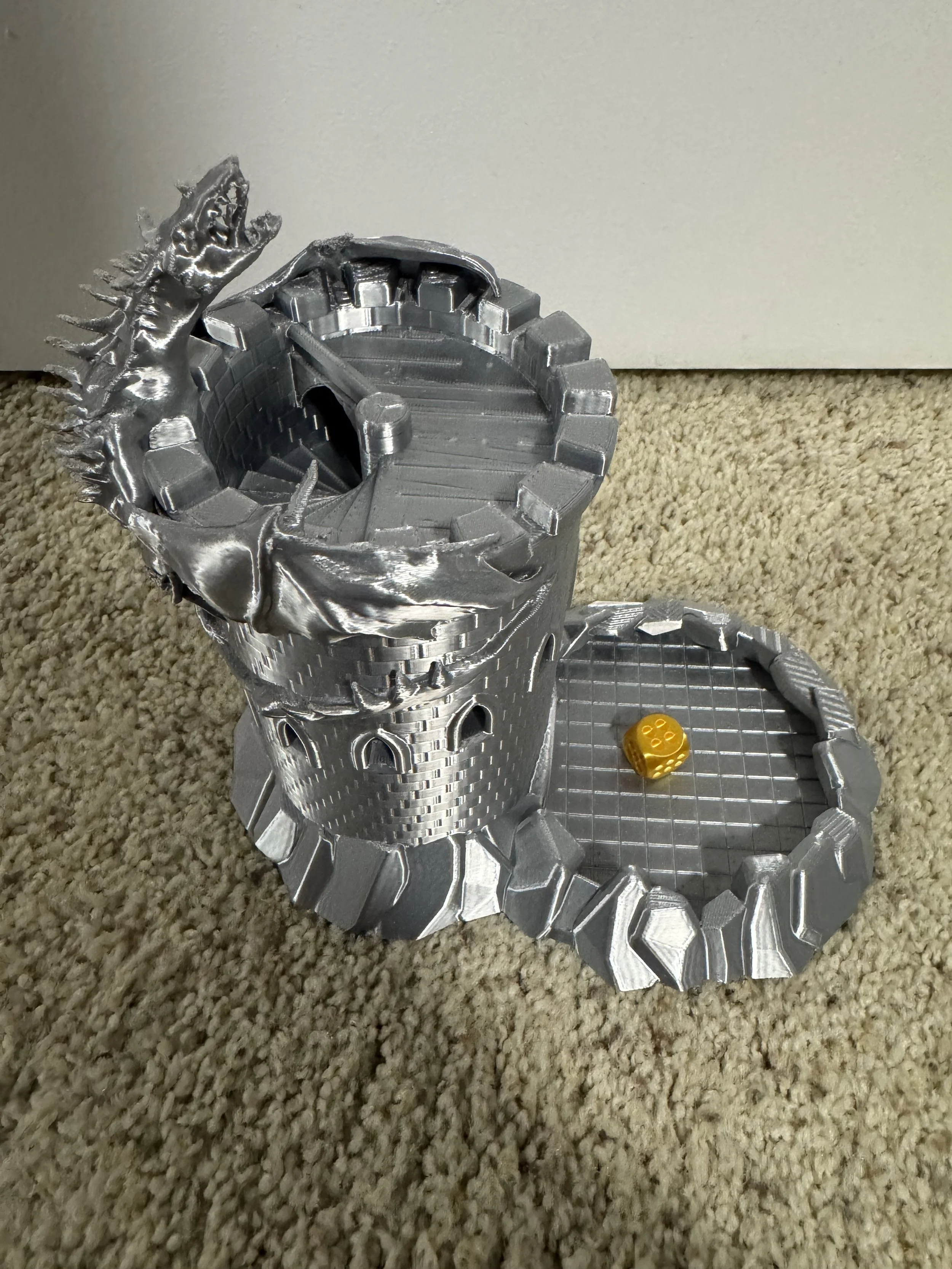 3D Printed Dragon Dice Tower with Matching Dice – Fantasy Tabletop Accessory